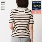 JIL SANDER+ ジルサンダー プラス Tシャツ J40GC0111 J46497 レディース クルーネック 半袖 リブ カットソー コットン ボーダー ロゴパッチ 080