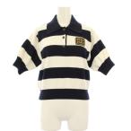 ミュウミュウ miumiu ニットポロシャツ ボーダー ロゴ 半袖 36 紺 白 MML889 S000 14M2 /KH レディース