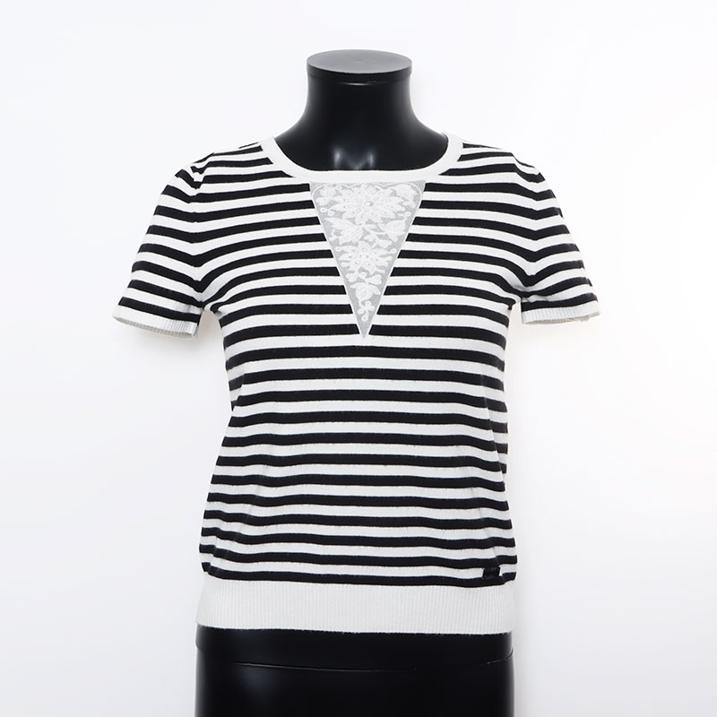 【全商品21%OFF!11/30 23:59まで】シャネル CHANEL 05P ボーダー 半袖シャツ Size:38 ニット ブラック ホワイト WS10334 【中古】