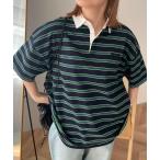 tシャツ 配色襟 ラガーシャツ風 ボーダートップス レディース