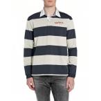 refomed リフォメッド ボーダーシャツ ラガーシャツ ハーフジップ メンズ トップス ワイドシルエット 長袖 サイズ2 BORDER RUGBY SHIRT -BLUE×BLACK-