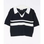 ニット セーター ラガーシャツ風5分袖ニットプルオーバー レディース