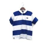 カンタベリー CANTERBURY 子供服 ラガーシャツ 半袖 ハーフボタン ロゴ ボーダー 160 ブルー 青 /KT8 キッズ