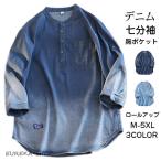 七分袖シャツ メンズデニムシャツ カジュアルシャツ デニム ロールアップ シャツ 七分袖 クールネック 半袖シャツ tシャツ 大きいサイズ 夏