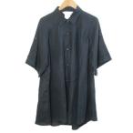 マックスマーラ MAX MARA 白タグ リネンシャツ 5分袖 ロールアップ袖 無地 42 LL相当 紺 ネイビー ベルト欠損 /X レディース