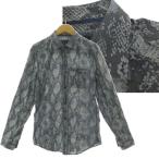 アルマーニエクスチェンジ A/X ARMANI EXCHANGE パイソン柄シャツ 胸ポケ 長袖 袖ロールアップ コットン グレー ネイビー XS メンズ