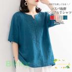 tシャツ 夏新作 新生活2024 綿麻 五分袖 ゆったり レディース カットソー トップス 無地 シンプル おしゃれ カジュアル 新作 新品 20代 30代 40代 50代 女性