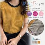 Tシャツ レディース 半袖 ゆったり カジュアル ボーダー おしゃれ かわいい 韓国 夏 ラウンドネック