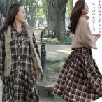Bネル ブラウンチェック シャツワンピ レディース ワンピース ロング マキシ 綿 100% 長袖 ロールアップ 裏地なし マックスマキシ コットン ボリューム