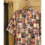 シャツ インド製 リラックスフィット マドラスチェック パッチワーク ボタンダウンシャツ ショートスリーブ メンズ