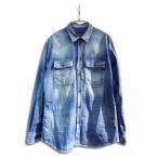 RRL ダブルアールエル 長袖シャツ SWEET ORR WEST DENIM SHIRT IN BLUE インディゴ パッチワーク ニット デニム シャツ インディゴブルー系 メンズ【古着】【中古】