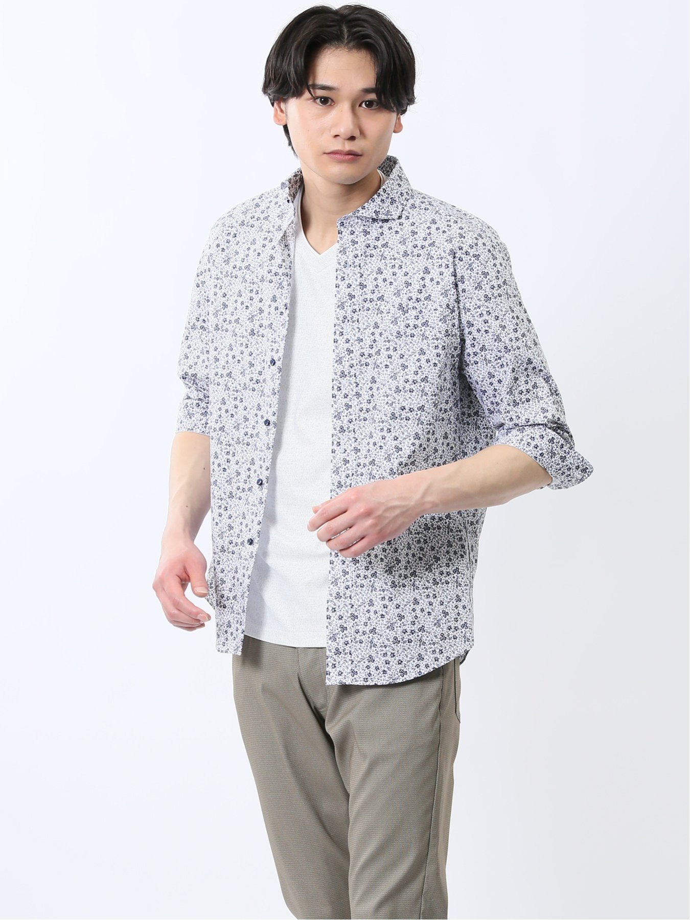 【SALE/30%OFF】TAKA-Q ストレッチ プリント カッタウェイ 7分袖シャツ タカキュー トップス シャツ・ブラウス ネイビー ホワイト【送料無料】