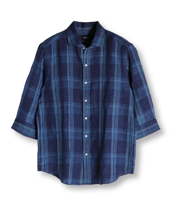 【SALE/20%OFF】MEN'S BIGI 【WEB限定】インディゴ染めチェック柄リネン7分袖シャツ メンズ ビギ トップス シャツ・ブラウス ブルー【送料無料】