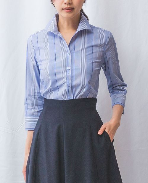 ★12/4 20時!20%OFFクーポン配布中★《ストライプスタンドカラー 七分袖 シャツ 》レディーストップス ストライプ スタンドカラー ストレッチ 伸縮性 【 ナラカミーチェ 公式】 ナラ カミーチェ 送料無料