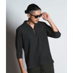 シャツ ダイヤ柄シャーリング七分袖スキッパーシャツ メンズ