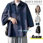 ジップシャツ 七分袖 メンズ プルオーバーシャツ ハーフジップ ゆったり 五分袖 無地 カジュアルシャツ ポロ風 襟付きTシャツ