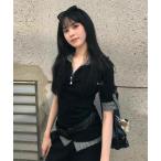 tシャツ チュールレイヤードボリューム5分袖Tシャツ レディース