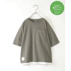 tシャツ ビッグシルエット袖リブラインポケット付き5分袖Tシャツ カットソー キッズ キッズ 子供服 男の子 女の子
