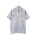 クロムハーツ Chrome Hearts サイズ:M GUAYABERA レザーパッチ付きチェック柄クロスボールボタン半袖シャツ(ブルー×ホワイト)【814062】【SS07】【メンズ】【中古】bb415#rinkan*B