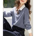 ブラウス シャツ ストライプ柄配色シャツ レディース