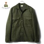 GUY ROVER / ギローバー ストライプ柄ウールアクリルポリエステルフランネルジャージーCPOシャツジャケット(3750GR307) (オリーブ×ライトグレー)