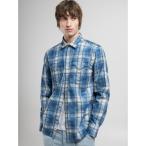 シャツ チェック柄インディゴデニムシャツ メンズ
