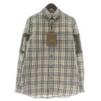 未使用品 BURBERRY LONDON ENGLAND ボタンダウンシャツ 長袖 ノバチェック TBロゴ ワッペン XS ベージュ 8042350