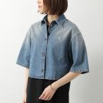 PRADA プラダ デニムシャツ GFC061 16PK レディース クロップド丈 半袖 ユーズド加工 トライアングルロゴ コットン F0V3N/LIGHT-BLUE