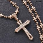 ネックレス メンズ クロス 十字架 ダイヤモンド 18金 K18PG 18K ピンクゴールド ペンダント シンプル ユニセックス 50cm チェーン30代 40代 50代 爆買