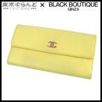 シャネル CHANEL ラッキークローバー ウォレット クリームイエロー シルバー金具 レザー 23番台 長財布 レディース 25XM 101829768
