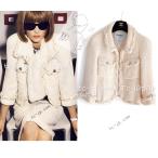 シャネル ジャケット CHANEL 47万 クリーム アイボリー 年中使える!グリポア宝石ボタン ウール キャメロン ディアス 超美品 34 36