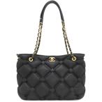 シャネル トートバッグ バブルキルト トートバッグ ブラック 黒 チェーンショルダー ココマーク 中古