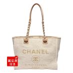 シャネル ドーヴィルGM ココマーク ロゴジャガード キャンバス レザー チェーンショルダー トートバッグ シルバー金具 ベージュ 17番台