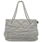 シャネル トートバッグ ウルトラステッチ ラムスキン グレー チェーンショルダー ココマーク