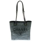 シャネル CHANEL ドーヴィル ショッピングバッグ AS3351 ネイビー ミックスファイバー トートバッグ ショルダーバッグ レディース 中古