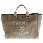CHANEL シャネル ドーヴィル シルバー金具 トートバッグ キャンバス レディース 中古