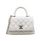 シャネル ハンドバッグ ショルダーバッグ トップハンドル ミニ フラップ バッグ AS2215 マトラッセ キャビアスキン ココマーク ホワイト ゴールド金具 CHANEL