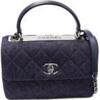 シャネル ハンドバッグ マトラッセ トップハンドル デニムキャンバス ネイビー シルバー金具 2WAY