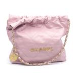 シャネル シャネル22スモールハンドバッグ AS3260 カーフスキン ピンク ゴールド金具 ランダムシリアル ショルダーバッグ 中古 送料無料