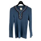 シャネル CHANEL ヘンリーネックリブニットブラウス ブルー サイズ:36