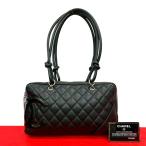 極 美品 カード シール有 10番台 CHANEL シャネル カンボン ココマーク レザー 本革 ボストンバッグ ボウリングバッグ ブラック 25599