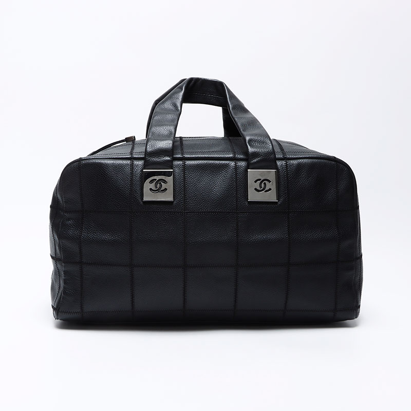 【全商品21%OFF!11/30 23:59まで】シャネル CHANEL 2004-2005 9番台 チョコバー カーフスキン ボーリング ボストンバッグ ブラック WS12416 【中古】