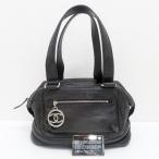 シャネル CHANEL チョコバー ミニボストンバッグ ココマークチャーム カーフ 黒 11番台 中古 [質イコー]