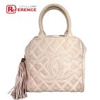 CHANEL シャネル CC ココマーク ロゴ カバン フリンジ タッセル ミニボストンバッグ マトラッセ ハンドバッグ ライトピンク系【中古】