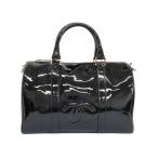 CHANEL シャネル ココマーク ボストンバッグ 旅行カバン トラベルバッグ エナメル パテントレザー ブラック ゴールド金具 ショルダーストラップ欠品 【中古】