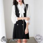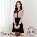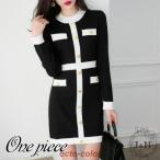 ワンピース 秋 春 ニット ひざ丈 膝丈 セットアップ風 レディース 長袖ワンピース Aライン キレイめ おしゃれ 着痩せ 通勤 OL オフィス シャネル風