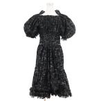 シャネル CHANEL ラメ入りロングワンピース 裾フリル ロゴボタン 黒 【中古】(58998)