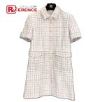 シャネル CHANEL ツイード ワンピース チェック ナイロン コットン ホワイト マルチカラー P63999V49109 レディース 中古