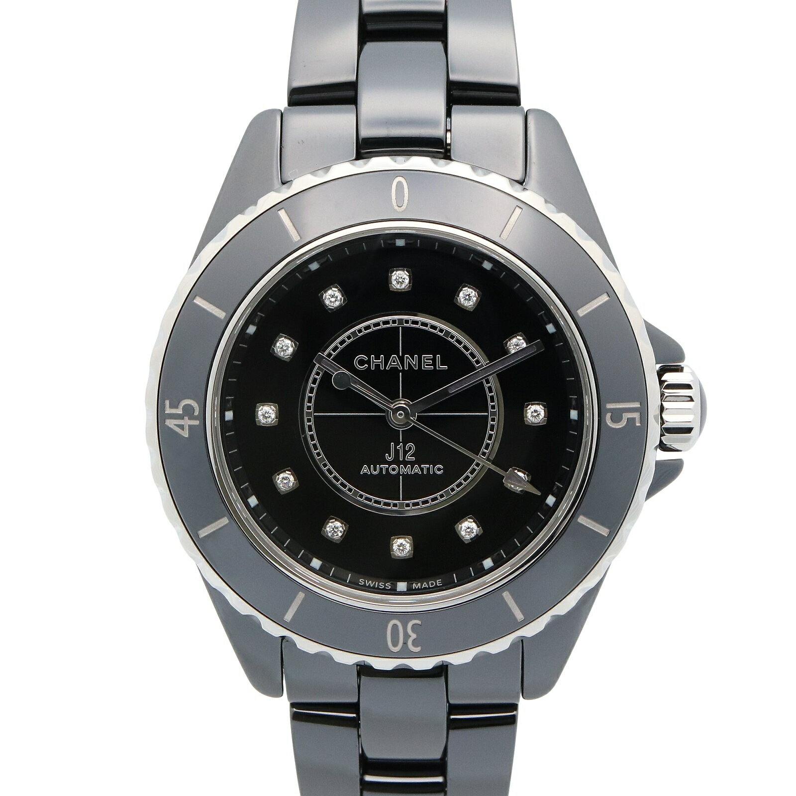 ◆全品5%OFFクーポン対象◆シャネル CHANEL J12 キャリバー12.2 33mm 12Pダイヤ 腕時計 時計 セラミック ダイヤモンド レディース ブラック系 H9742 【中古】