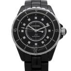1年間保証 CHANEL シャネル J12 12Pダイヤ キャリバー12.1 38mm H5702 セラミック×SS 黒文字盤 オートマ 腕時計